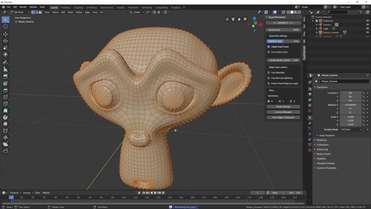 Thanks! That’s looks like quite a good topology! I would probably add more details around the eyes and maybe nose if I would plan on animating that… and maybe quad remesher has some tools to specify such areas. But even if not - it seems like it’s doing very good job. Maybe even better job if I would make it manually