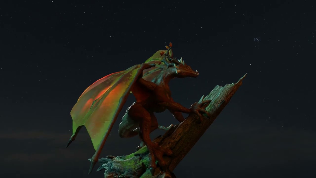I love autumn colors so I themed my dragon around that with leaf like wings, tree branch antlers, and a pinecone for a tail! I uploaded a video here to show off the translucent effect on the wings: