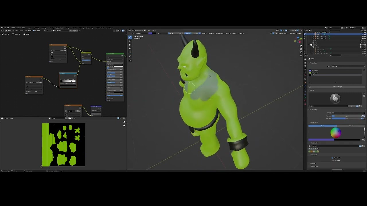 I am in section 9 of the Blender Character Creator course (Painting): I cannot figure out what is going wrong. I have wierd lines appearing on my ogre and every time I try to paint, Blender freezes and stops responding for a few seconds. I have saved the blender file in my google drive, refer to the link below: