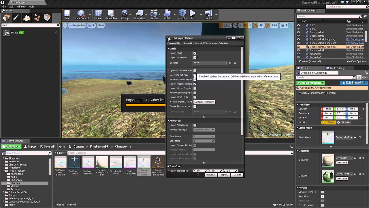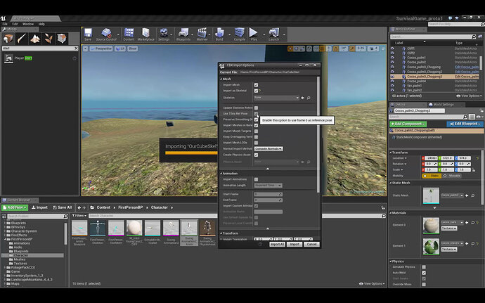 Another thing that is implied later is that your FBX files will contain animations in them, but when you import into unreal you dont get any animations… Actually, just realizing how, this was probably because he was using a blend file in Unity. FBX isnt used for animations is it?