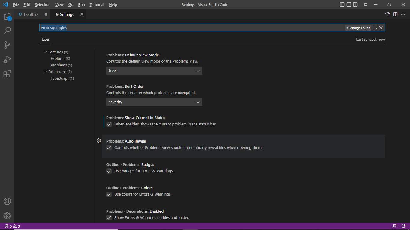 I tried updating .NET, I uninstalled and reinstalled the C# intellisense extension, I’ve looked in the settings.json file, restarting my PC every time, and still VSCode doesn’t seem to acknowledge that there is such a thing as error squiggles. I have absolutely no idea what else I can do.
