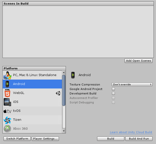 Ok I think I got it. I didn’t notice that you were using 5.4.1, so I upgraded to that. I did have to open from the GVR package file instead of a scene because everything else wasn’t importing in otherwise. Once I did that and imported everything, I could go to the Android build settings and get the same settings selection that you did. The only thing was that it also said I need to upgrade to at least Unity 5.4.0, which I already did. So I guess I’ll just have to get through more of the lesson to make sure it’s working properly.