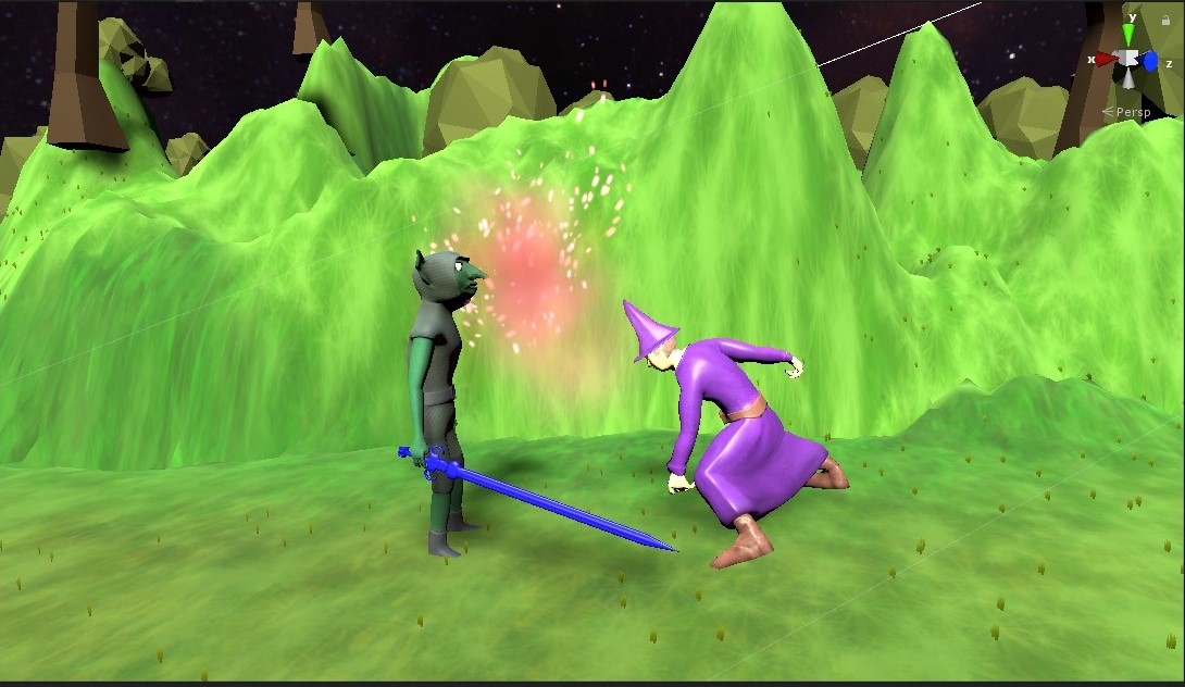 My wand of fire. After recording the video, I noticed that the fireball needs to instantiate near the tip of the wand. No big deal, will work on that later.
