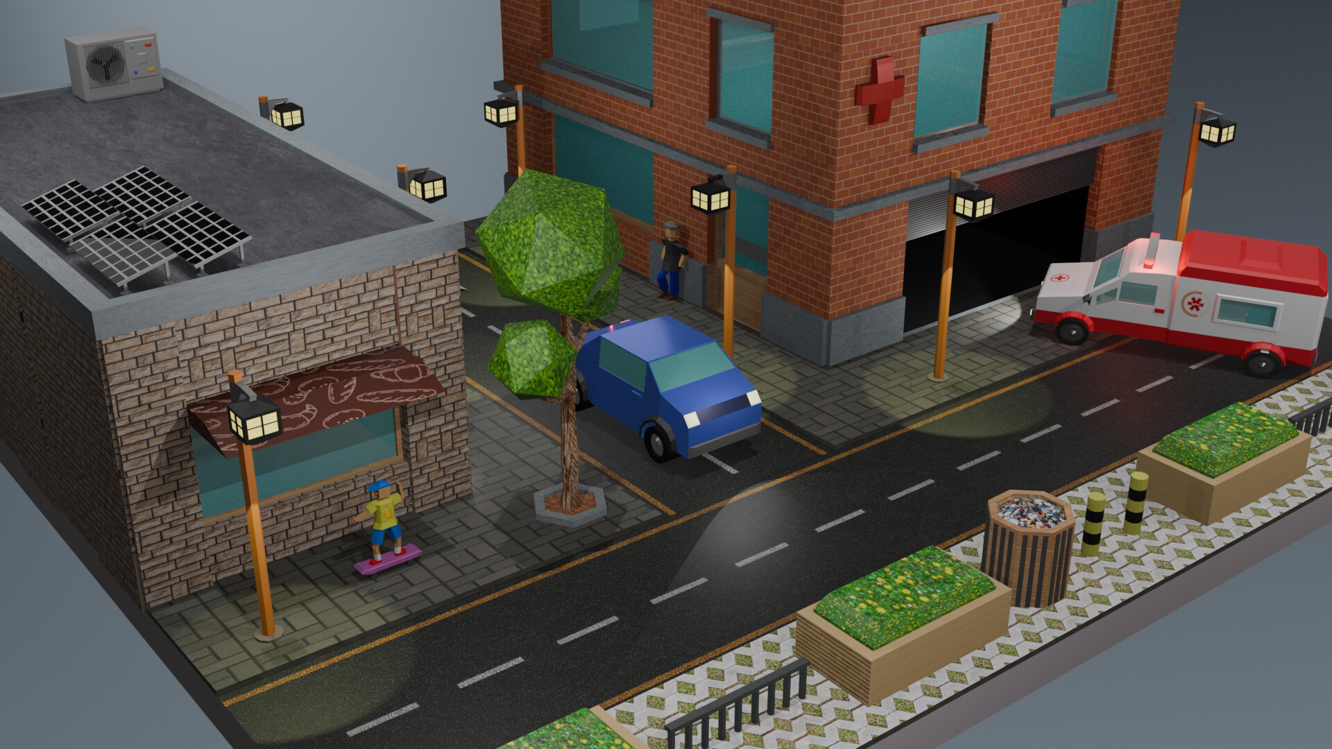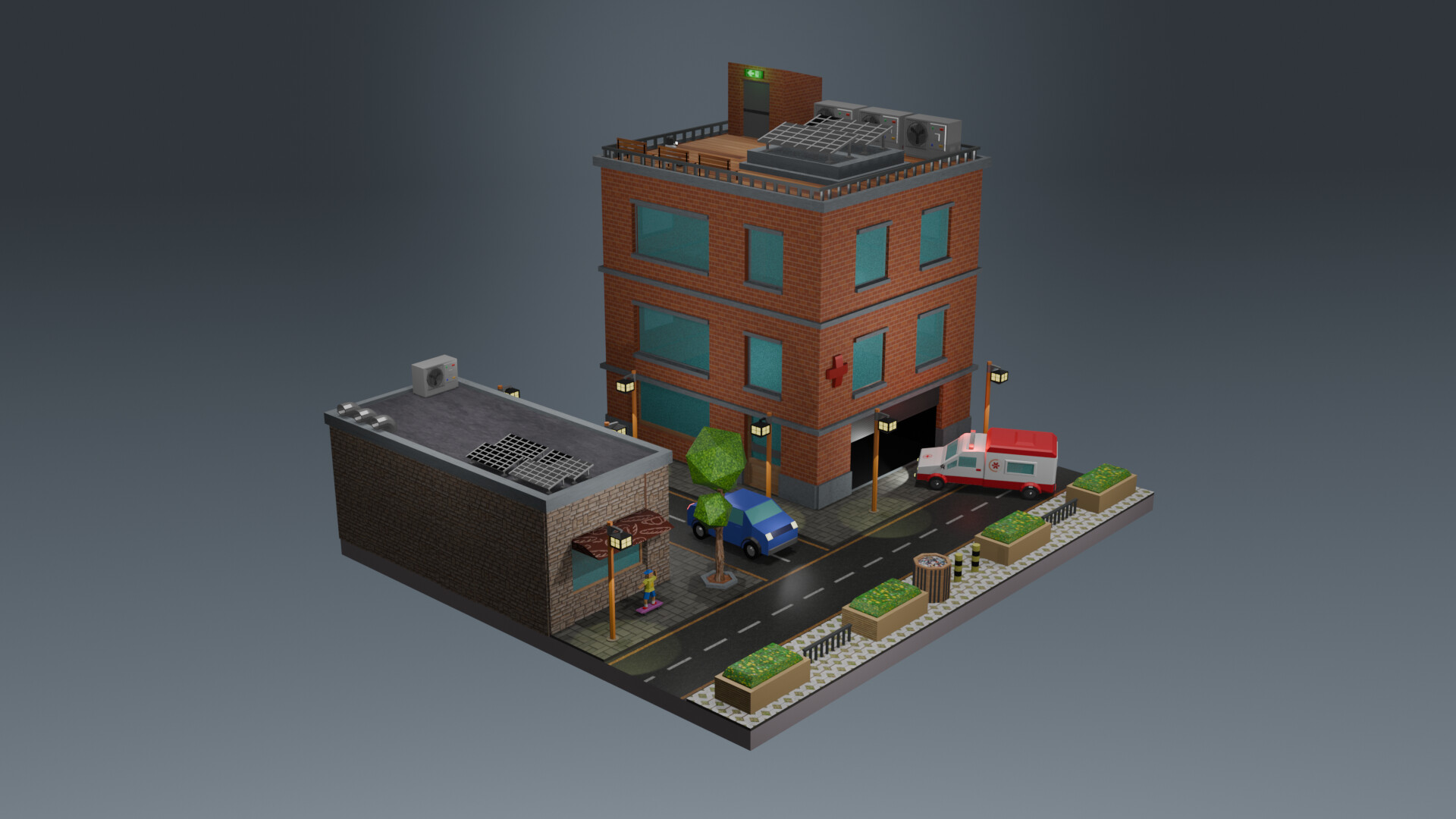After modeling the plane from the main course, I started doing a few things by myself and didn’t stop. My lastested creation is this diorama… Now it’s time to go back to course, I gotta finish it.