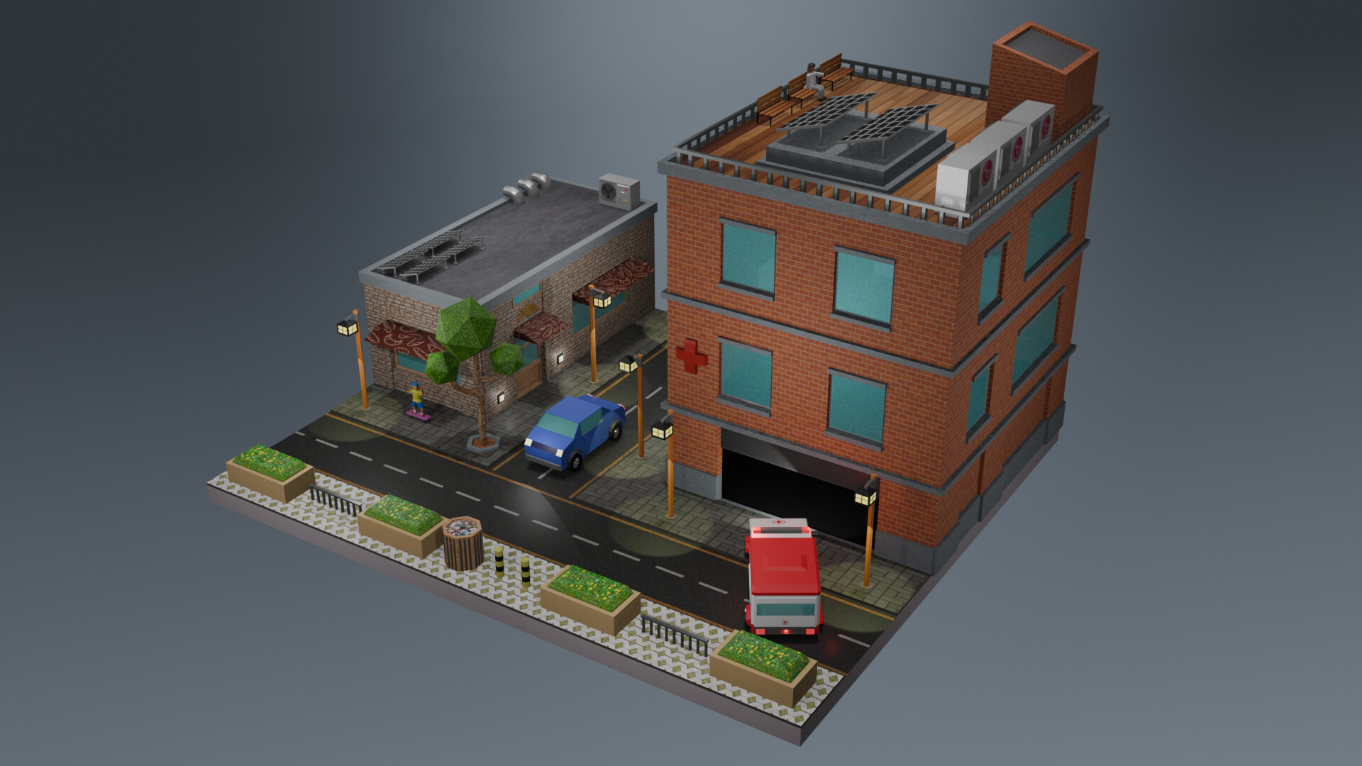 Shows how far you can go modelling a low poly scene that still looks realistic particularly as background of a scene. Like the Lego land characters. Well done!