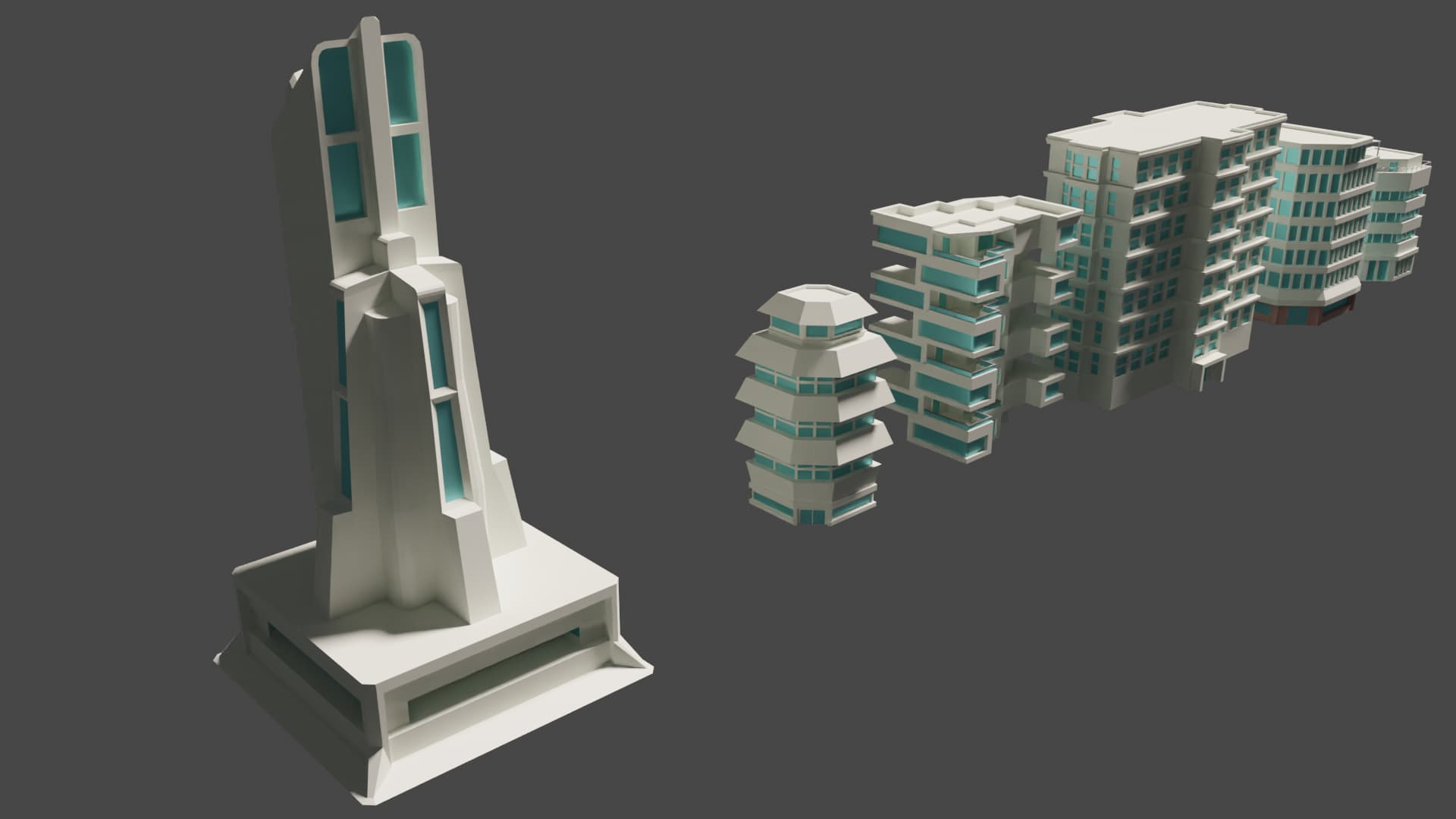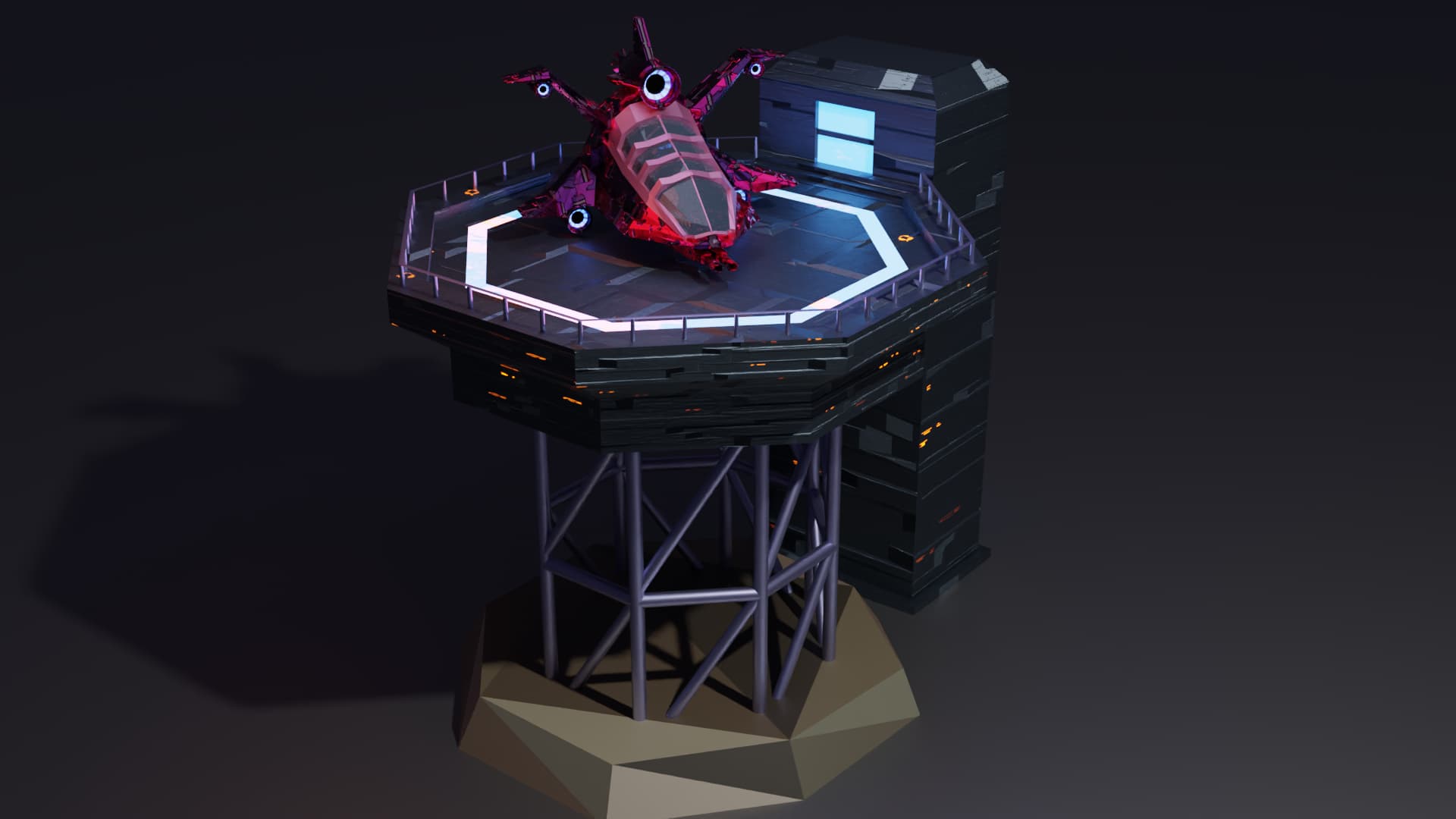 Past assets I used. The landing pad is a big feature and I used one of the buildings in the background.