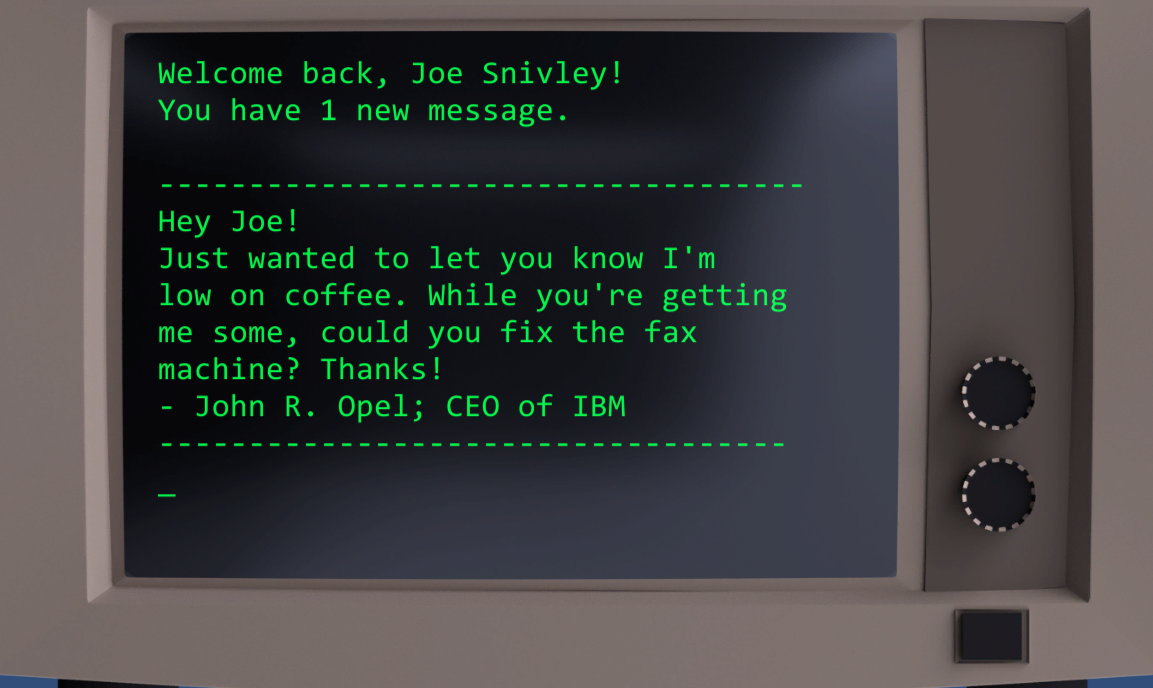 Nice additions to really draw the player into the game! Reminds me a bit of the messages on the computers in Fallout 3…