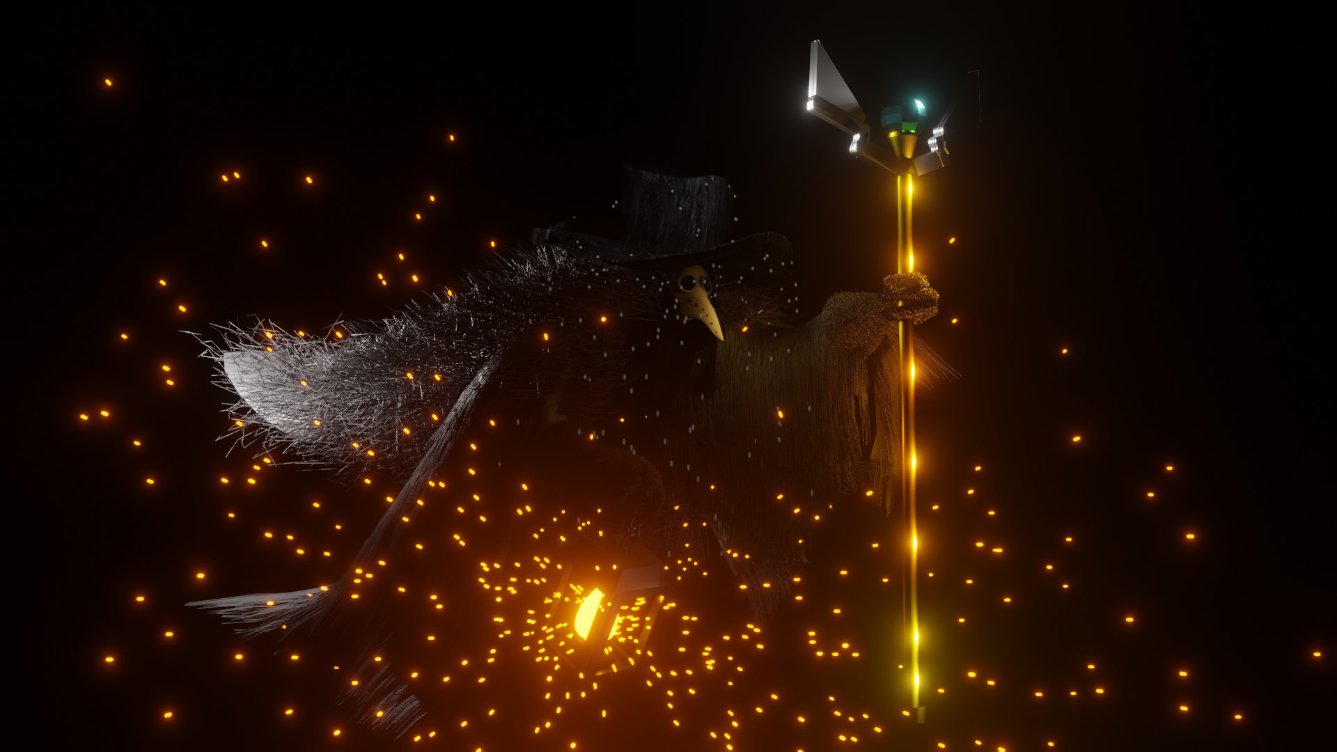 Yeah, I wanted to create a dark character (He should be a boss of my game), that hides in the shadows and the only thing you can clearly see is his lantern and its glowing effects, thanks!