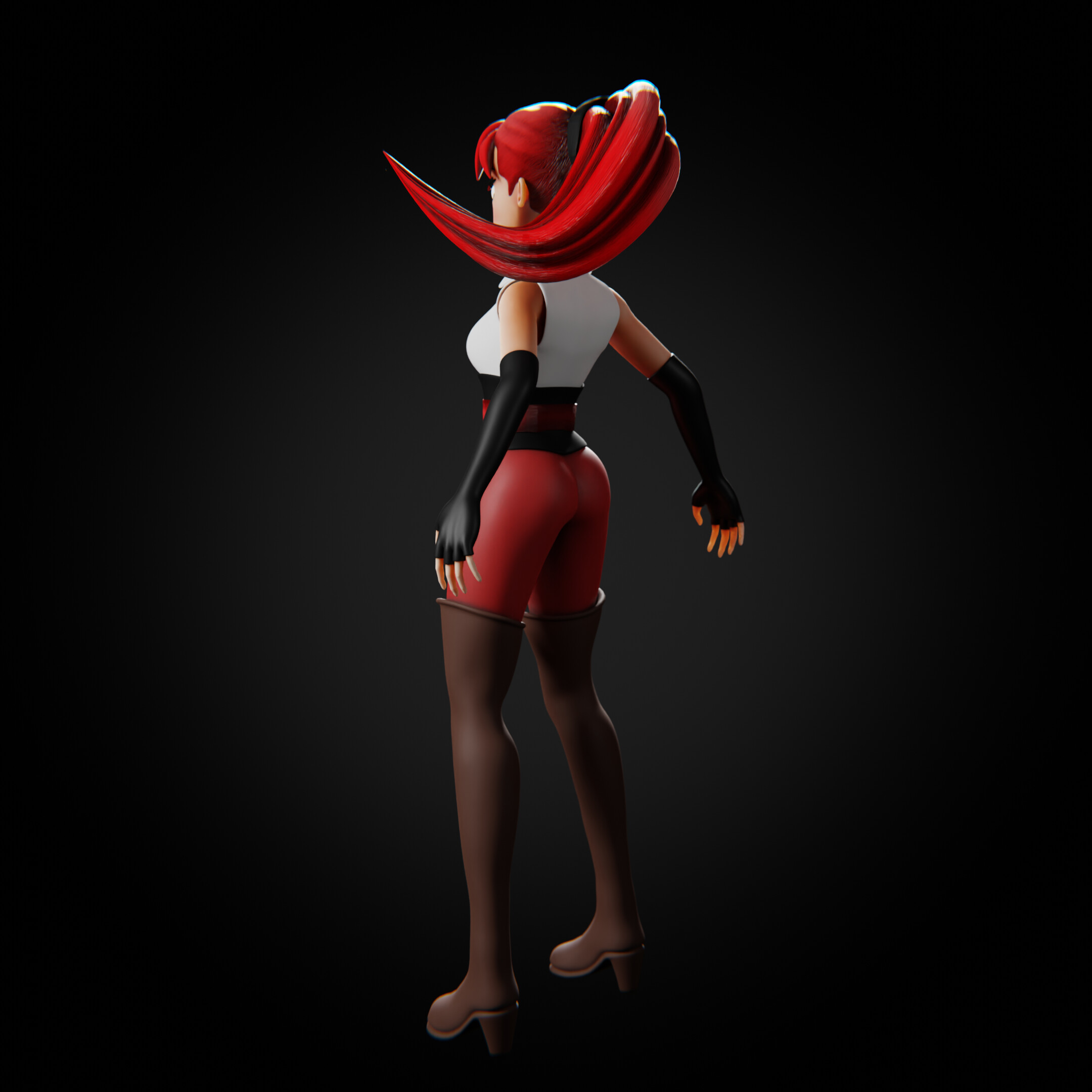 I agree, though her belt buckle is what really caught my eye. The “swing” of her ponytail, however is a bit much though, but otherwise looks good.