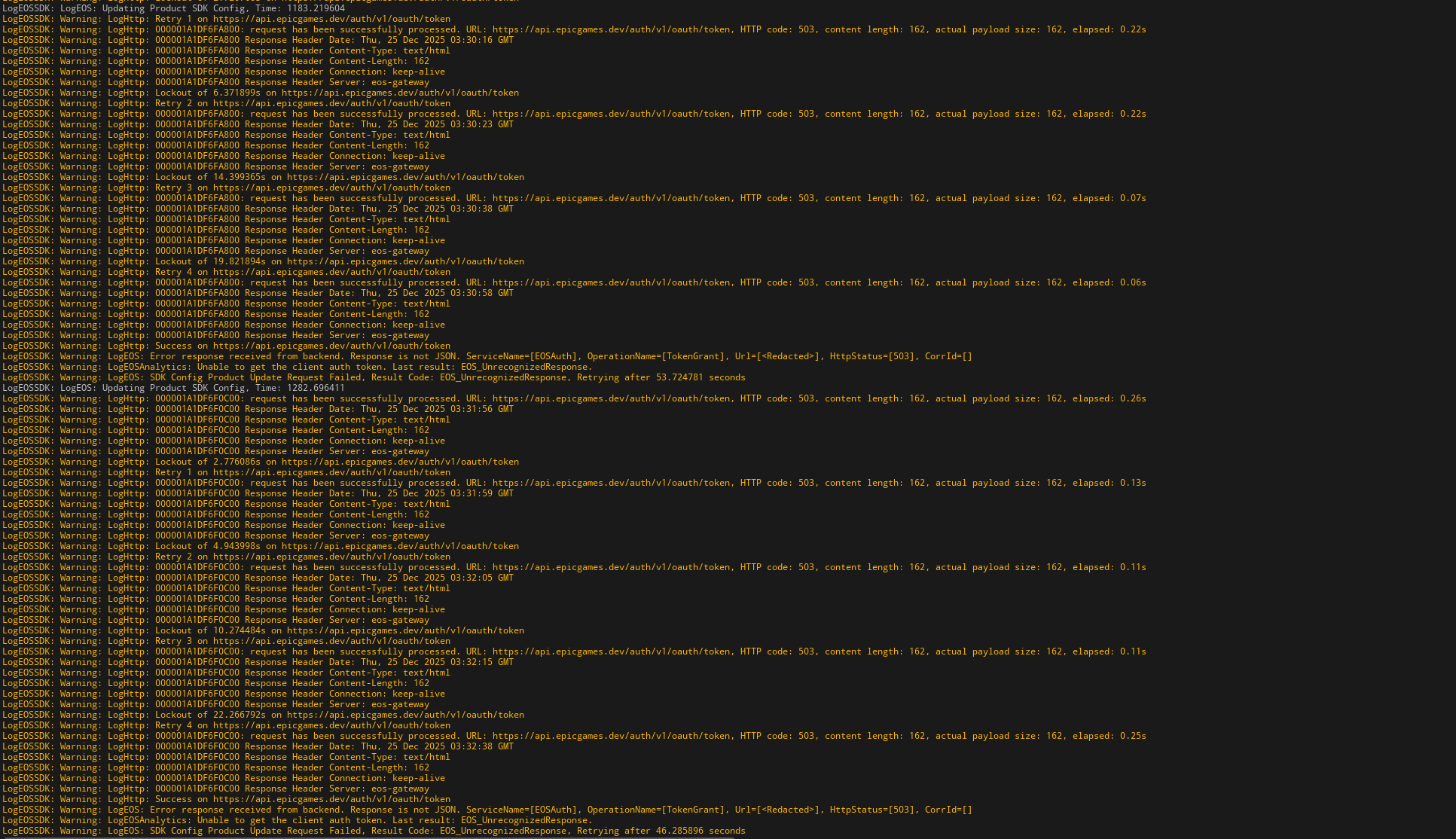 The EPIC GAME server return a 503 error, which is a problem on their side. Not in your code / setup. Server is unreachable, maybe DOS-attack, a bug, or just busy with too many request.