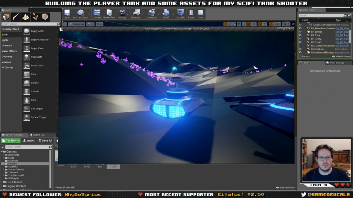 Looks like things are coming together quite well for you, Cala. Definitely digging the low-poly vibe, and the light emitting from your tank and crystal foliage. Keep it up!