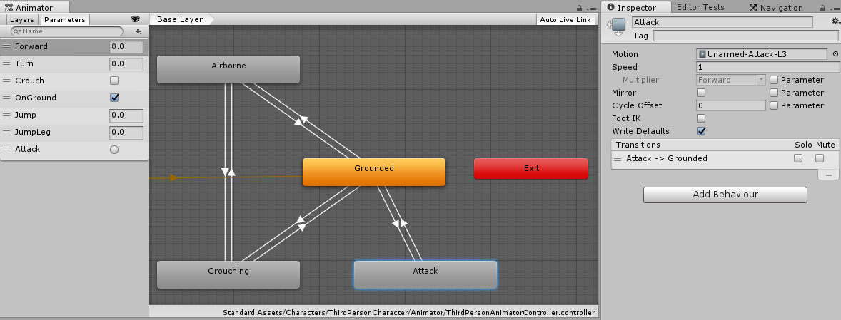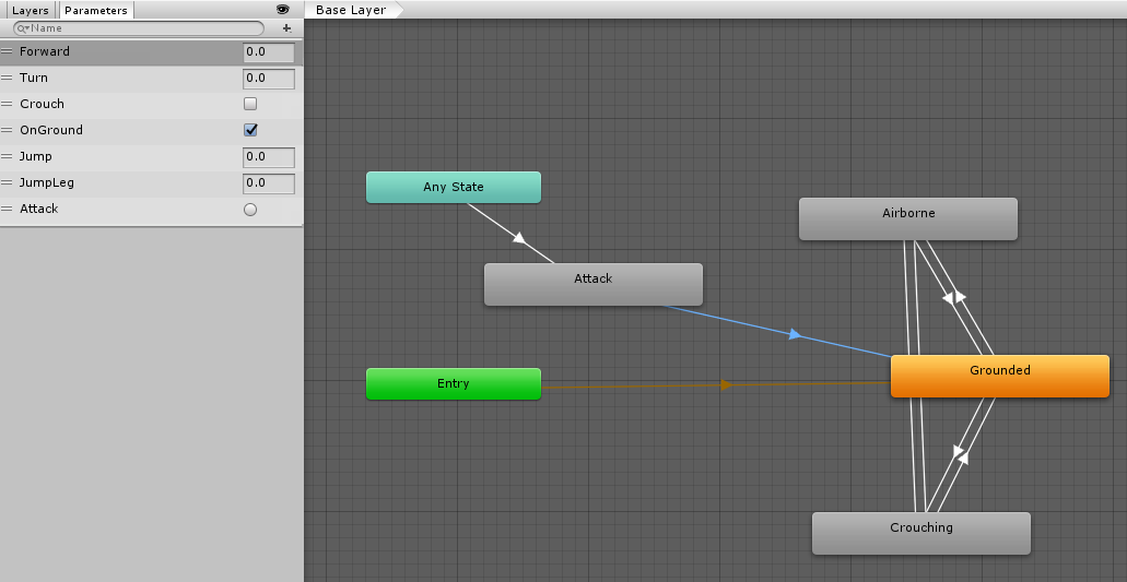 Then I get a sardonic animation. It seems it waits for the grounded state to run through before firing the attack state. So much tweaking needed but it’s a start.