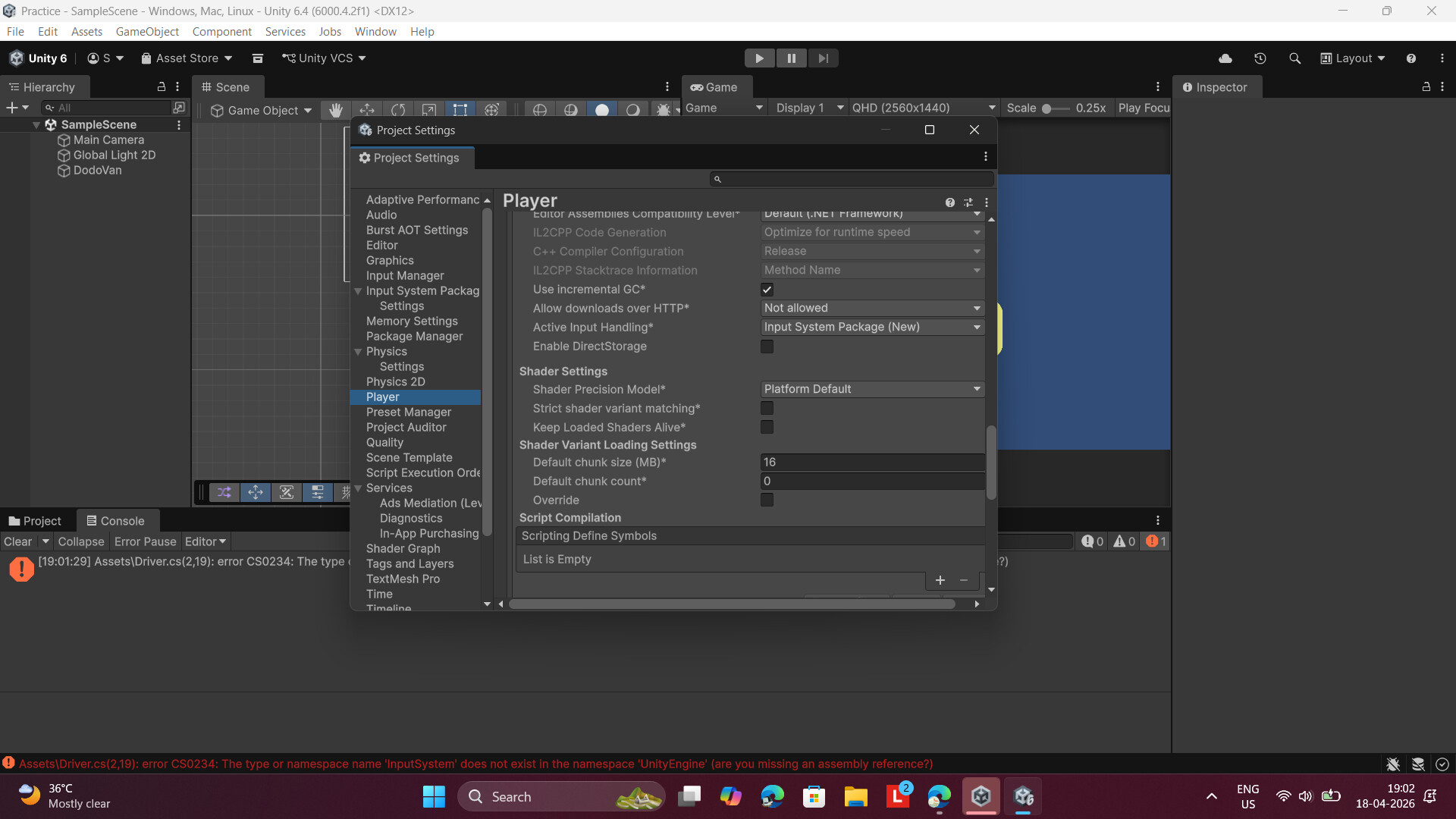 I am getting the error regarding InputSystem. I have checked whether the packed has installed or not and I found it is installed and enable too