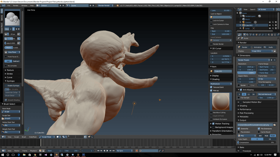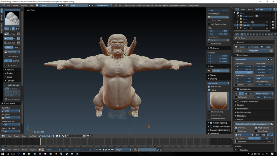 It’s my first in blender lol. I have used 3d studio max off and on but they were never as detailed as this. This started out extremely low poly and then I found the sculpting took and went to work on the details. I kind of treated it as if it were one of my drawings lol
