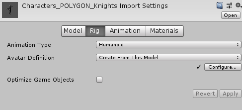 In Unity, humanoid animations with different rigs use Avatars to map the characters to the standard “humaniod” rig. Most humanoid characters will ahve certain things in common… While the basic overall architecture is common, the exact names of the bones will differ from model to model, and sometimes some bones will even be missing.