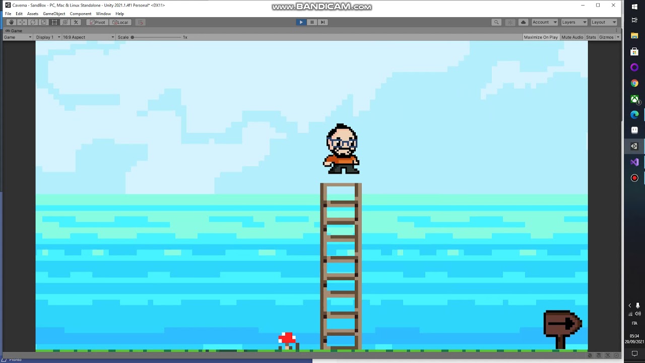 If you want, you can modify this code to make the character fall until the player presses the climb key, which might be better, because right now the ladders behaves like a very sticky wall.