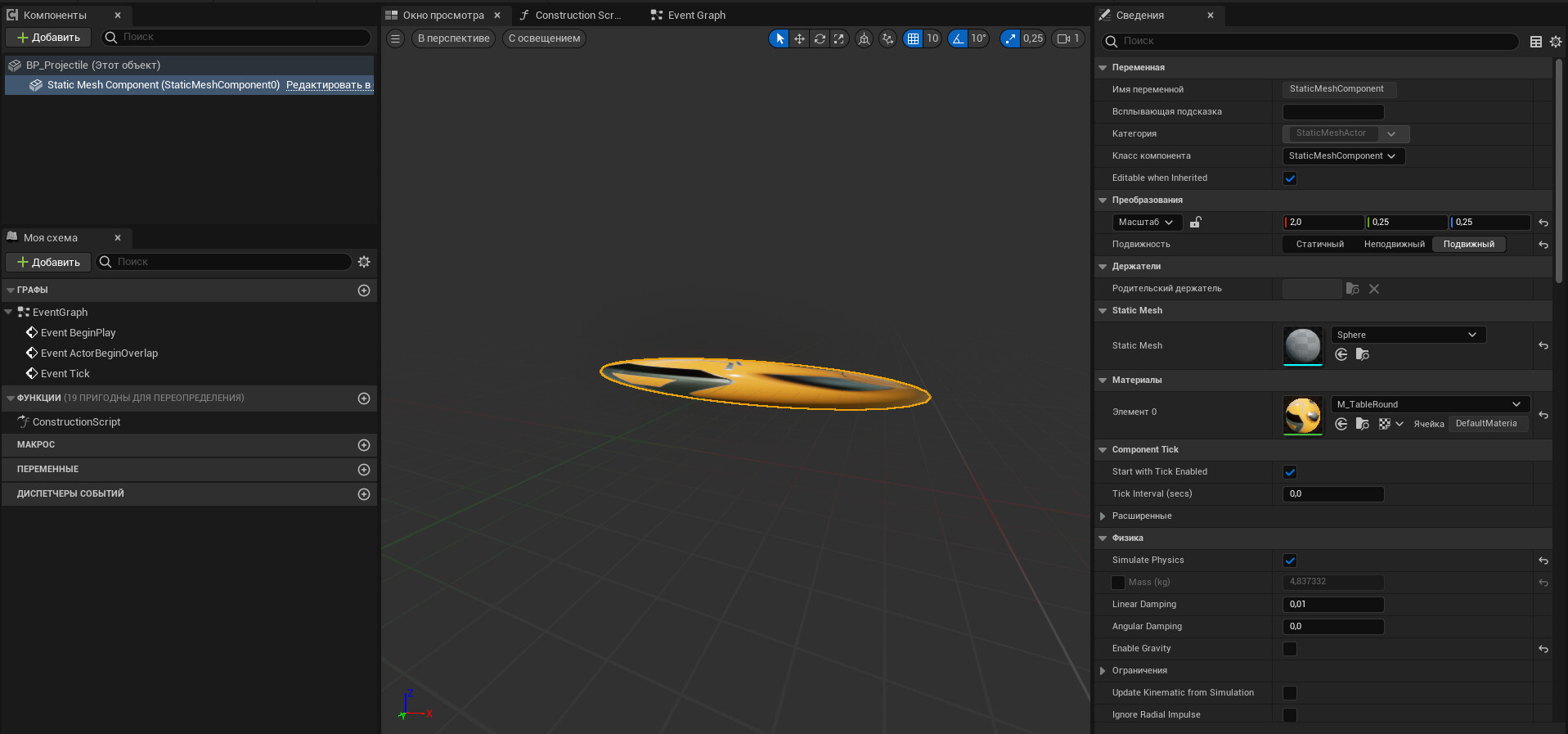 I tried to change projectile’s mass, dimensions and form and also the impulse it gets, but the problem was still there.