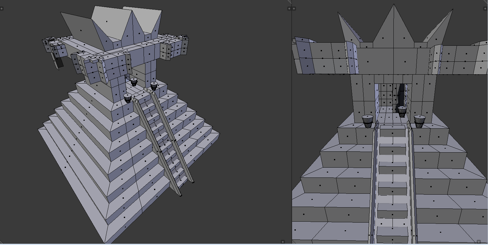 Had a lot of fun with the construction of my Mayan temple. It was a lot of fun and I added a lot of extra intricacy and detail to really use all of my blender skills. The stairs are a little father apart than they should be, but I thought it looked nicer that way (I still used the array modifier to make them, following the challenge). I had a lot of fun and I’m ready to move into section 3 of this awesome course!