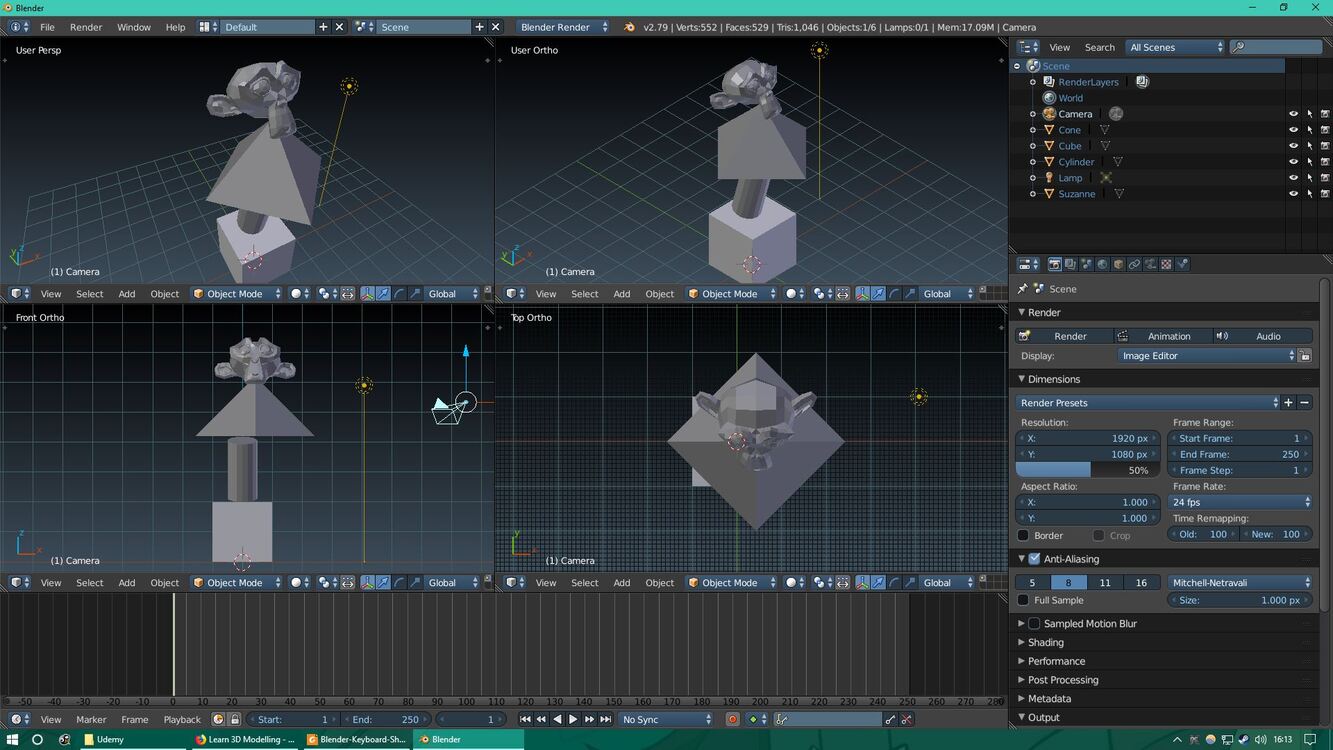I have a small bit of experience with 3dsMax so having the four 3D windows was familiar for me!