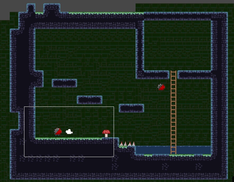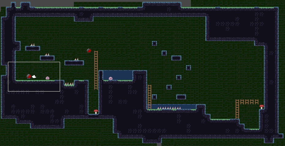 These are my 3 levels. The first is a little basic get to know the world, with the mushroom, spikes, water, and ladders. Level 2 introduces the enemies, and just shows sort of their functionality of where they can be and go. Finally, things are put to the test a little in level 3. Spikes, enemies, platforms(mostly kept in the idea that coins will be coming shortly), to see how well the player can get out alive.