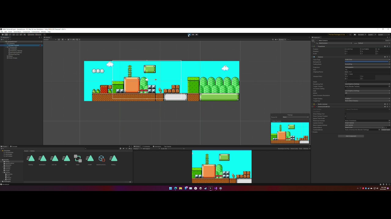 I also made it so that mario simply flies and up and falls through the ground like he does in the games. Although I did not implement small mario yet… probably wouldn’t be too hard though because I think i can do it by having it based on a 2hp system or a bool based on his state but it would take awhile and Idk about the animations lol. I could probably cheat by making all the small mario sprites it’s own anim and have them use their own bools and triggers? idk…
