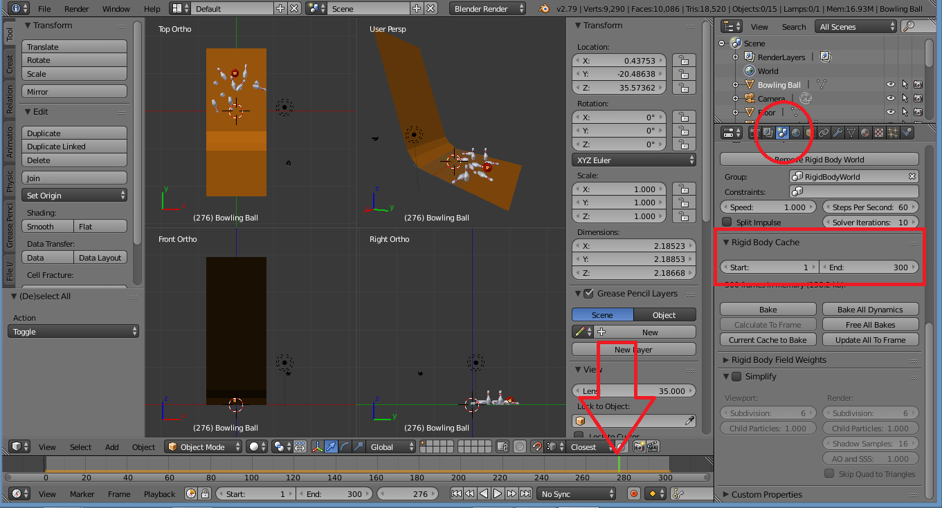I’ve extended my animation to 300 frames but the bowling animations/physic stop at 250. Why?