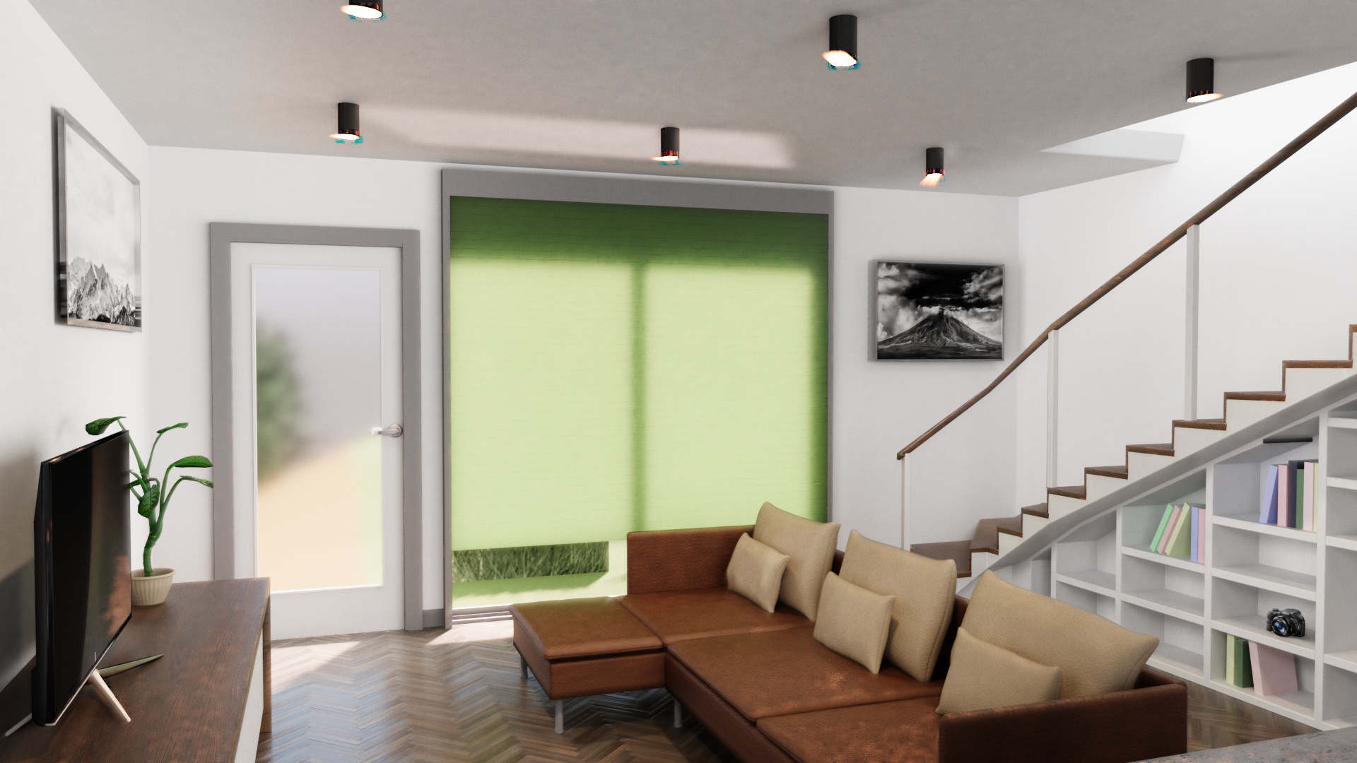 Room for improvement: There’s strange blue artifacts on the lights, intentional? Picture frame UV mapping, picture “bleeds” to the frame. Couch cushions look really hard