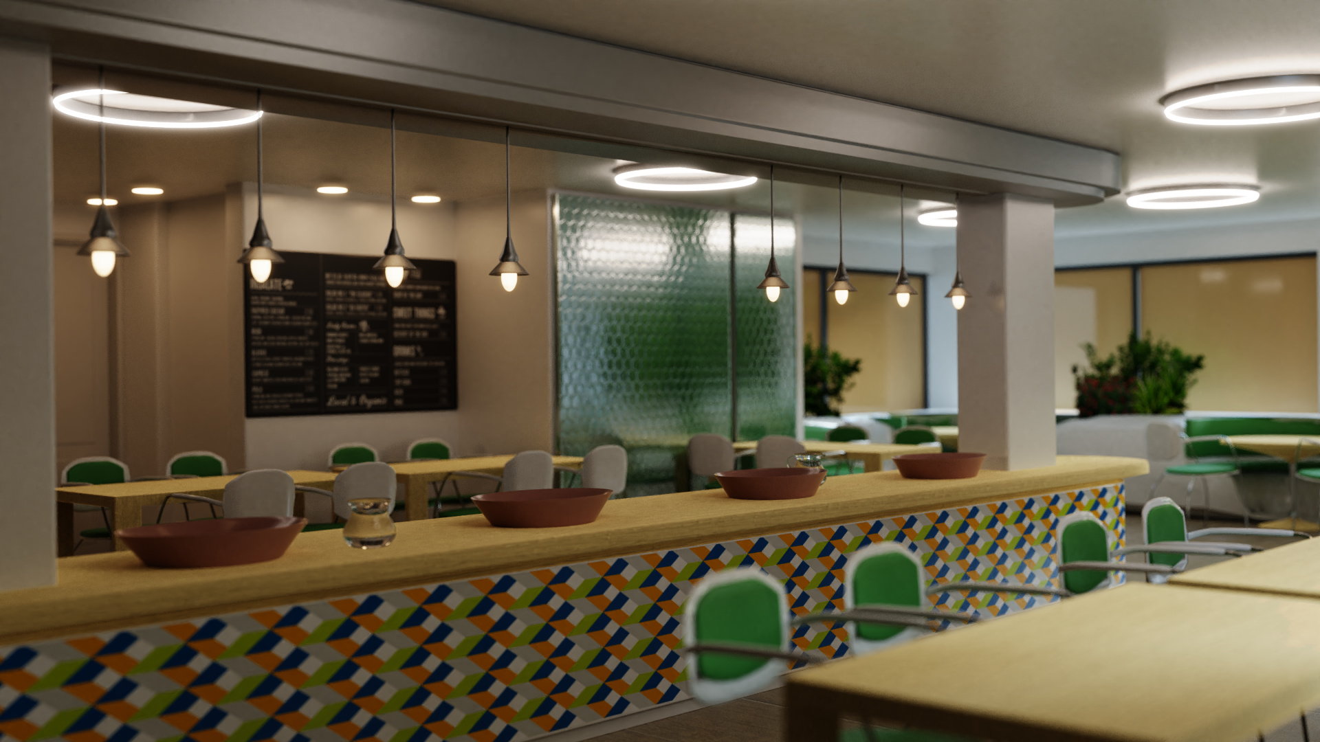 Plant in the bottom right corner looks like it’s floating? Shades of the ceiling spot lights can be seen, maybe add a little more geometry (and /or is the smooth shading on?). Frige material could use some work to look more real.
