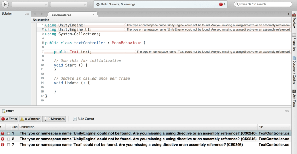 I tried to find online to find a solution, which suggested I reinstall unity/monodev, which i did, but I still did not get the blue text for it. fyi, Unity4.72 for me too.