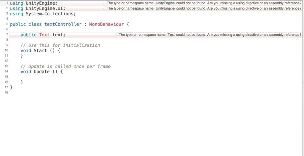 I’m not spotting anything wrong with the code, you have the using statement at the top correct. I can’t quite see the top of the tab in the screenshot but I’m guessing the script has been saved. Try closing Mono and then re-open from Unity and see if it changes.