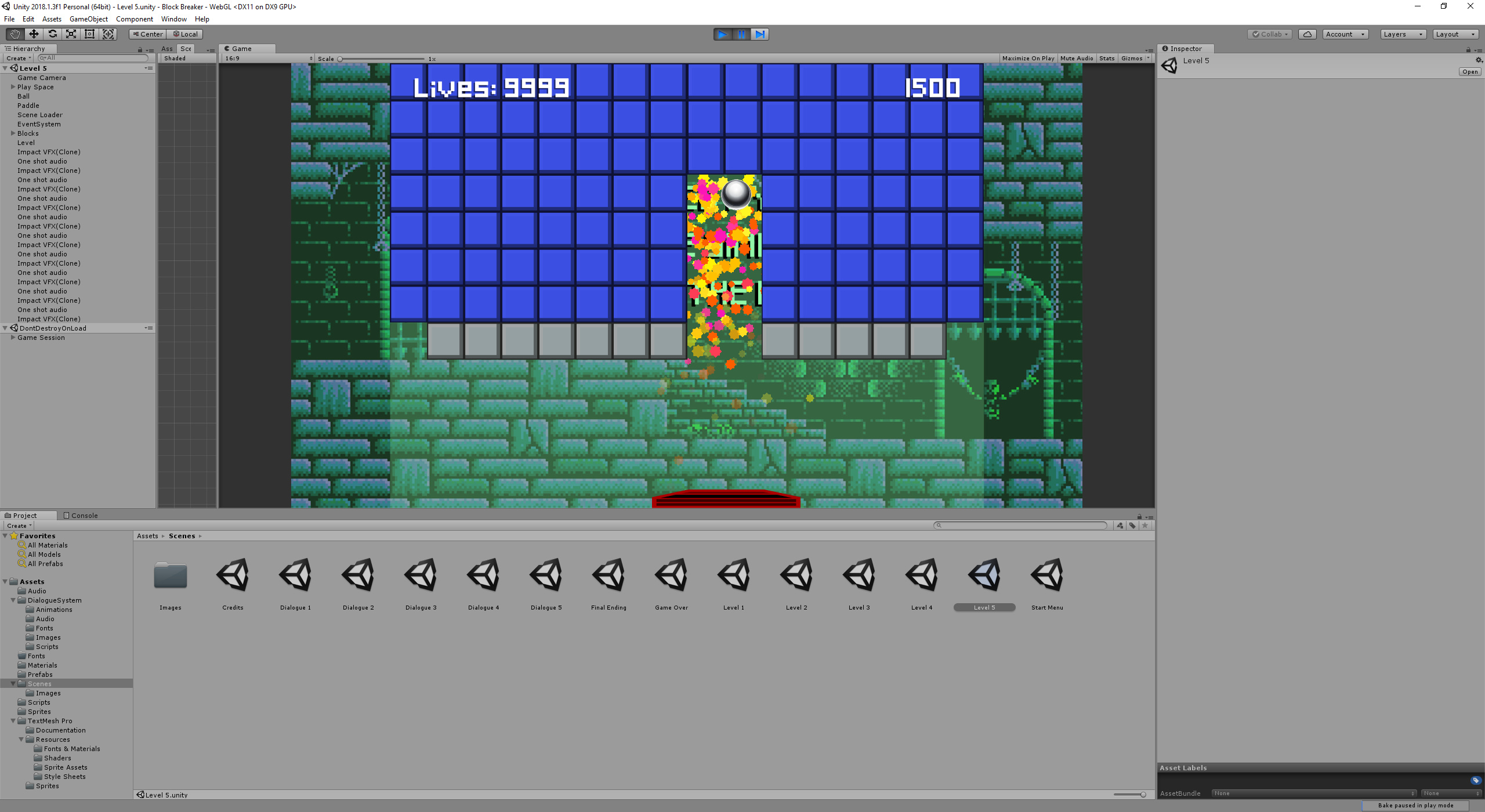 - GODmode final level (break blocks on trigger instead of collision to blast right through them, lives counter set to 9999 and loss of life disabled)