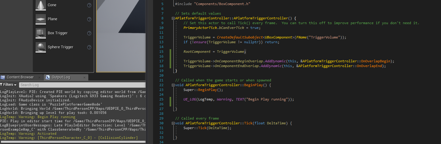 Note, however, that HasAuthority will not prevent log output from appearing twice if a given instance of PlatformsToTrigger is populated by references to two identical platform actors; it’s a good idea to occasionally double-check that you’re not trying to trigger the same platform twice on one trigger.