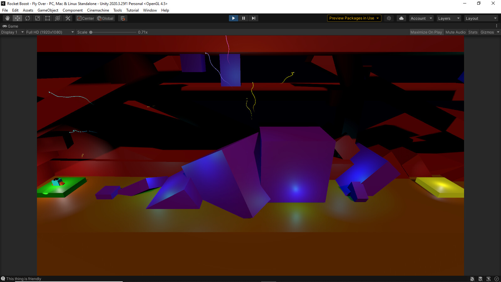 I tried to step it up with trying out different free assets and adding some extra things to make it feel more alive. I tried to go for a fiery/volcano theme. The second I used the lighting we learned to create hidden obstacles.