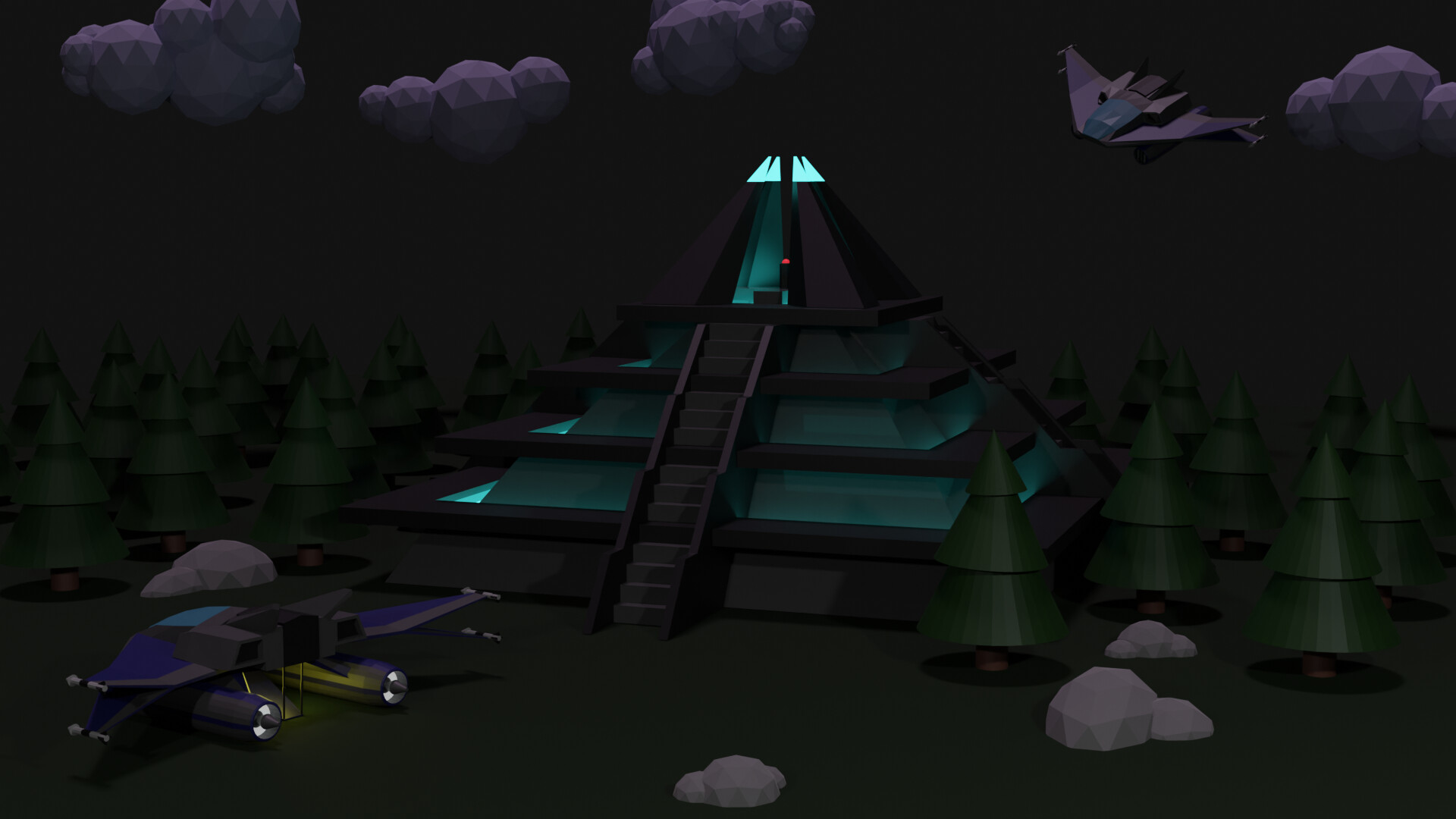 A little Sci Fi Pyramid scene with space ships. Getting more comfortable with modeling efficiently.