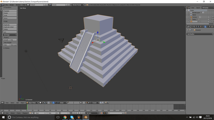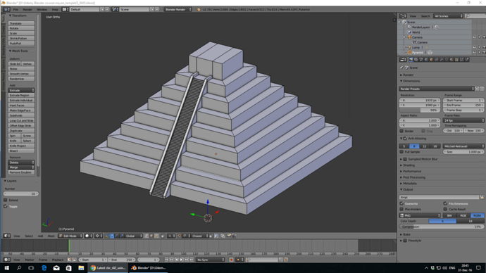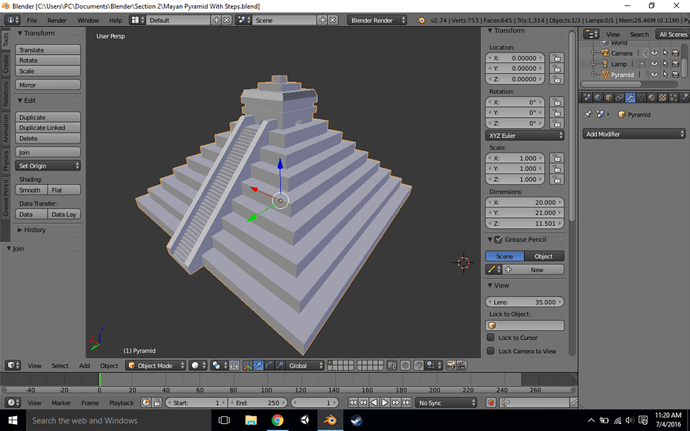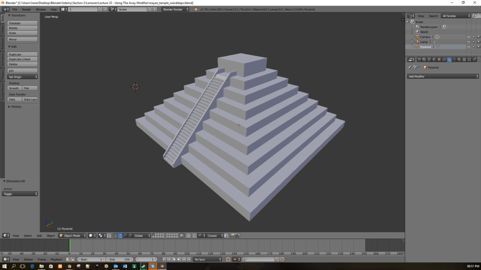 I really like the array tool, when I made the stairs in the first challenge of the pyramid I made the stairs one by one extruding the edges hehe but now with this tool I create the stair in less than 1 minute is really impressed