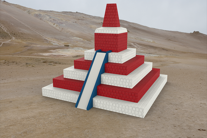 Did my stairs and applied the separate tool to the rest of the stepped bodies and the temple on top of the pyramid. Then rendered it with different materials