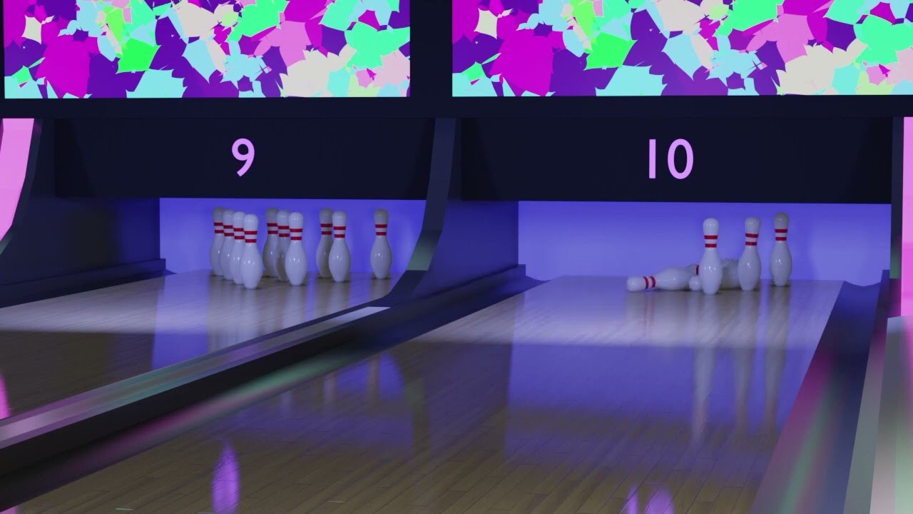 That ball destroyed those pins, lol. I Love it. The scene looks just like something I would see at my local lanes with the neon colors. Great job!