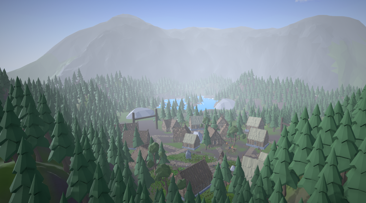 Base sandbox with some houses and tight forest grouping.