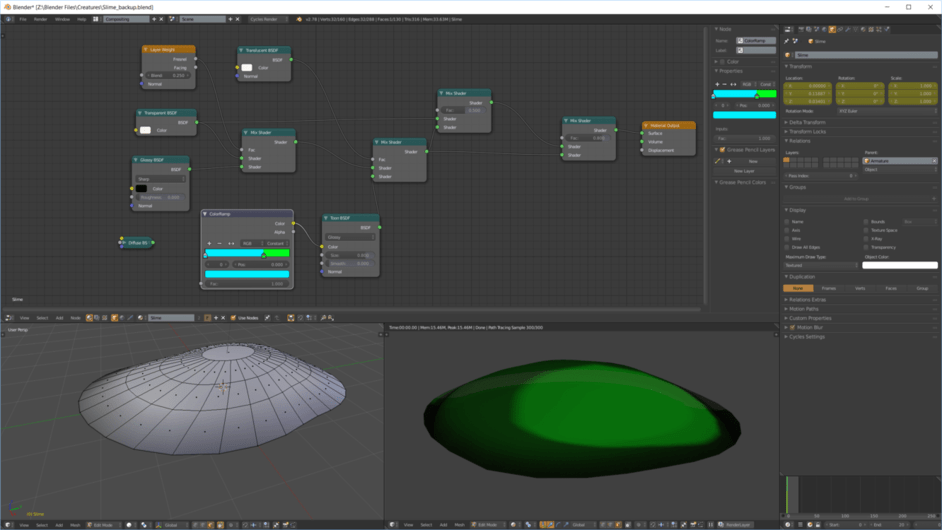 Nodes & Mesh (ignore the unconnected diffuse, I left it there for saving the color at the time.):