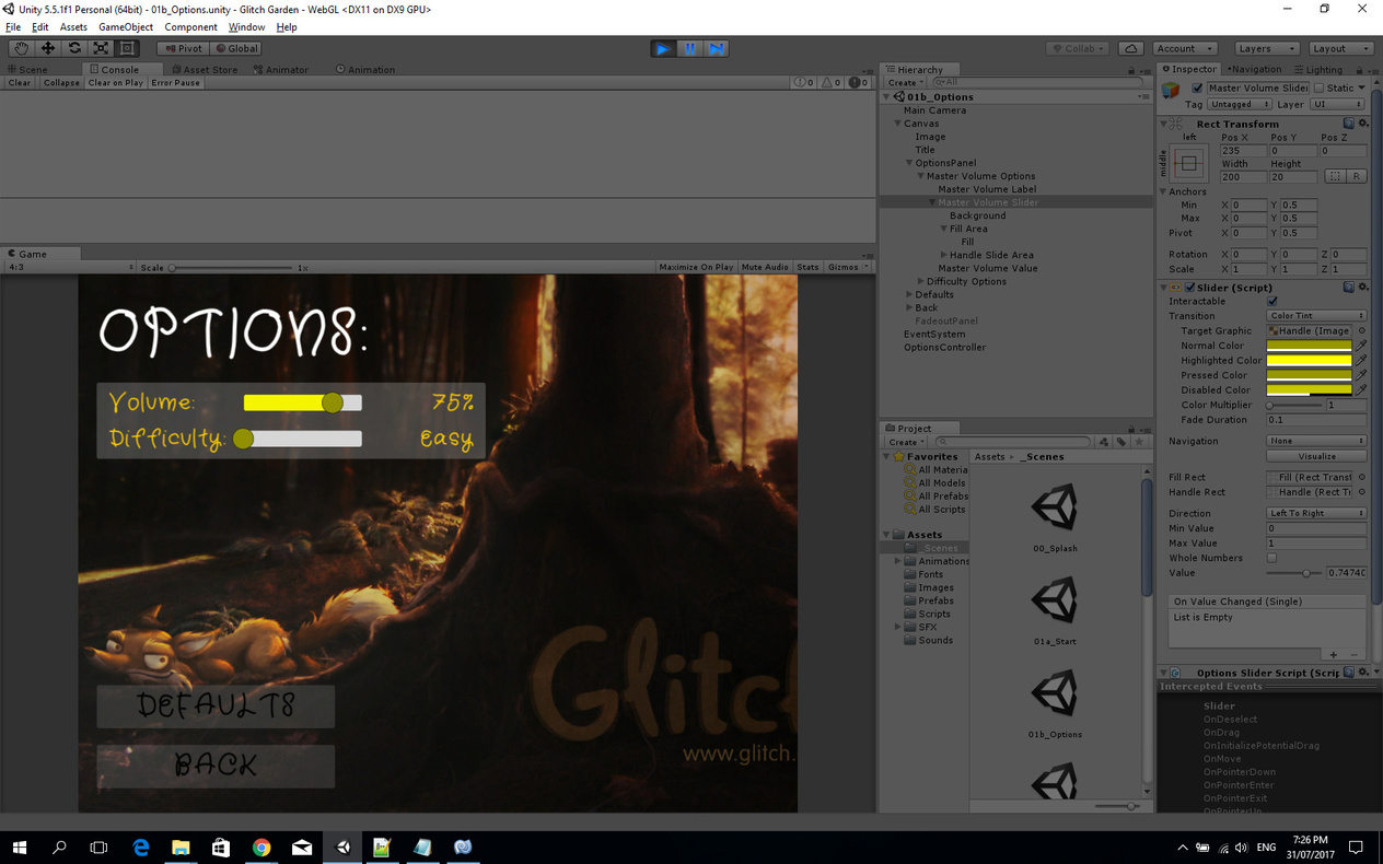 Seeing as we’re talking about sliders here, it may be useful to include something about how to call methods when the value of the slider changes in a script. This will probably come up in later courses, I’m not far enough through to know yet.