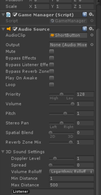 I have created a new scene called Menu and added a Start Button to it that the user clicks to move into the actual game for my version of Text101. However, every tutorial and attempt I have made to play a sound on the button click has failed. These include the tutorials in the following places (EDIT: deleted two links, left the correct link):
