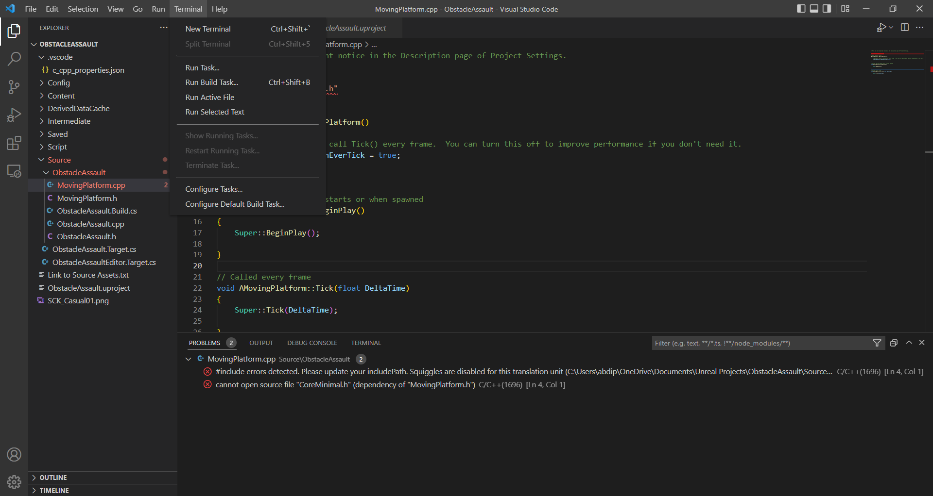 I can’t seem to find the ObstacleAssualtEditor Win64 Development Build, or any other build tasks.