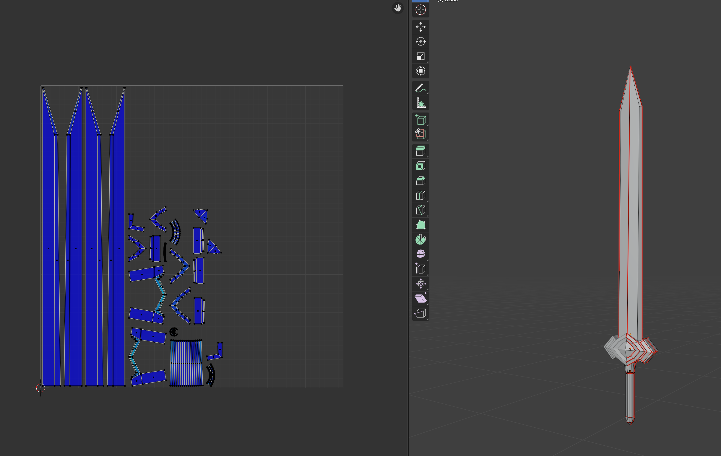 Looks pretty good to me. Of course if you are creating texture maps that’s when a good set out helps to texture like on like etc. For instance the sword could amalgamate some of the bare metal areas perhaps?