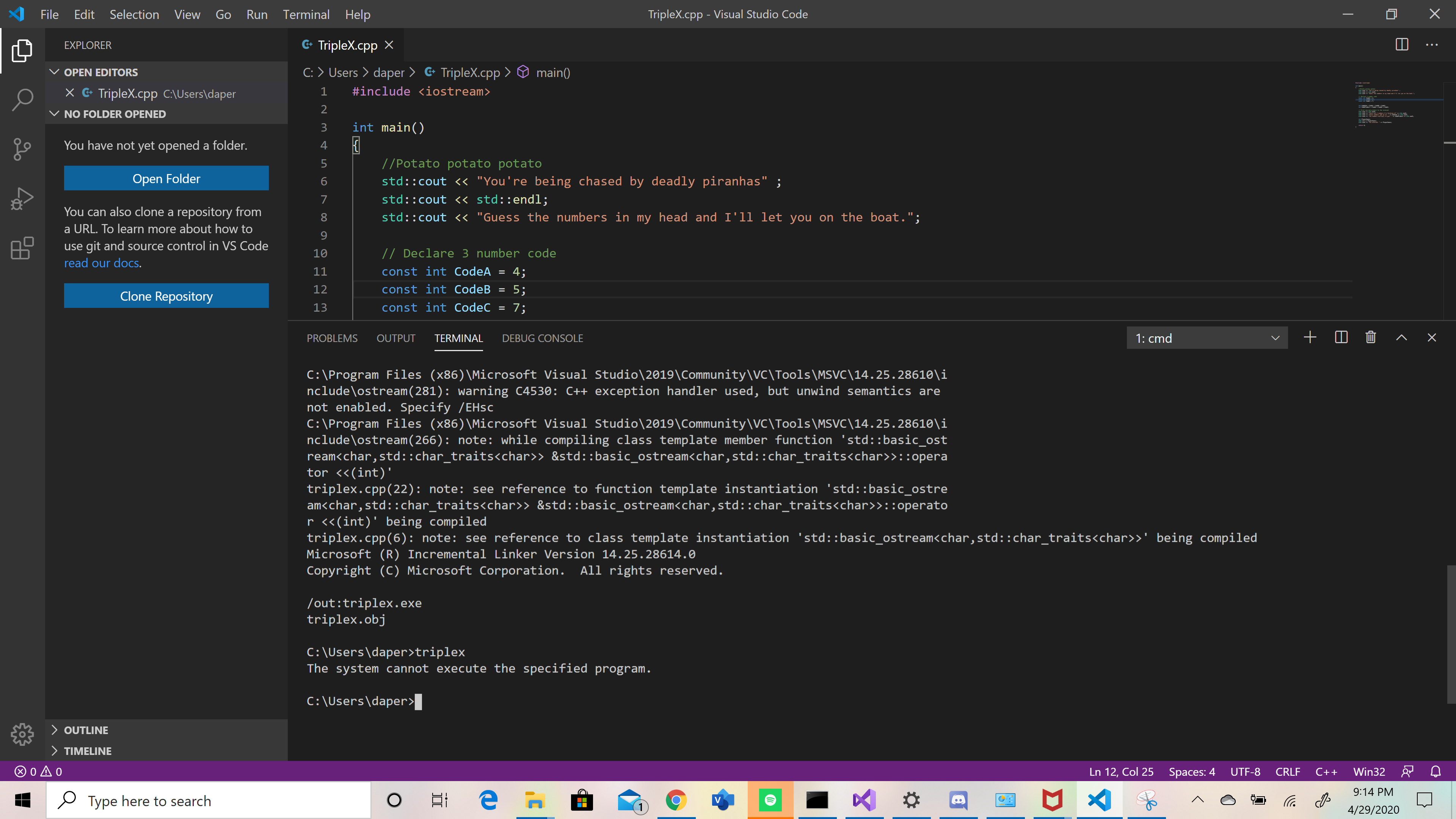 I keep getting this error whenever I add std::cin and can’t seem to fix it regardless of whether or not I add the executable to my antivirus software’s exclusion list