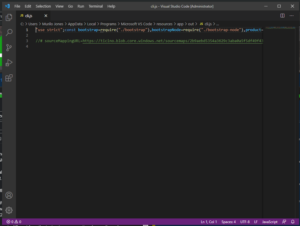 When Code is opened the screen is different from the instructor, as everytime I open through developers prompt, it opens with some file in it: “cli.js”