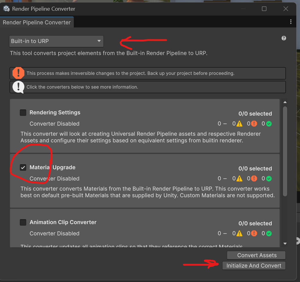 You’ll get a warning box that these changes are irreversable, but that’s ok, because once your’e used to URP, you’re not ever going to want to go back.