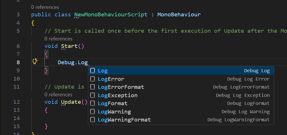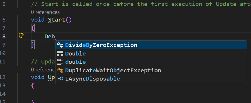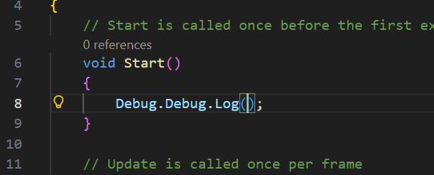 The Original Problem: When the tutorial asked me to type Debug.Log(), my VS Code auto-completed it to Debug.Debug.Log. I also noticed that my script had an extra using System.Diagnostics; line at the top, which was not in the video.