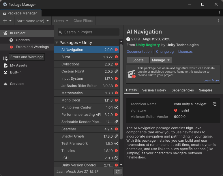 Are you able to install the relevant packages? If so, ignore the warnings. Unity will hopefully release a new update soon, which will hopefully fix the bug.