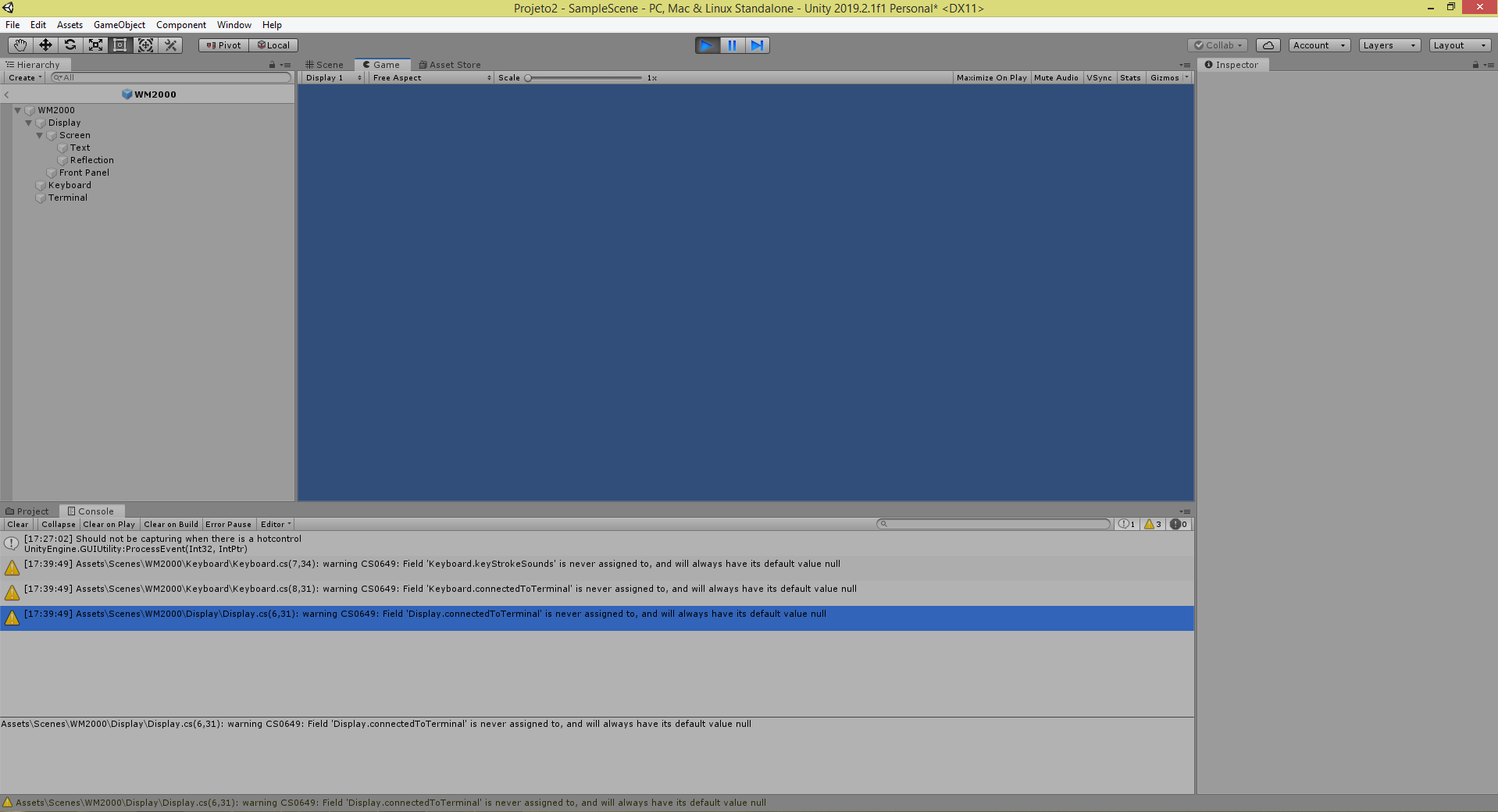 I’m doing the terminal lesson on the unity course, and when I first did the lesson it worked fine, and out of nowhere I started getting this warnings on the code and I did nothing. I’m also getting a blue screen when I create a new project with no scripts at all.