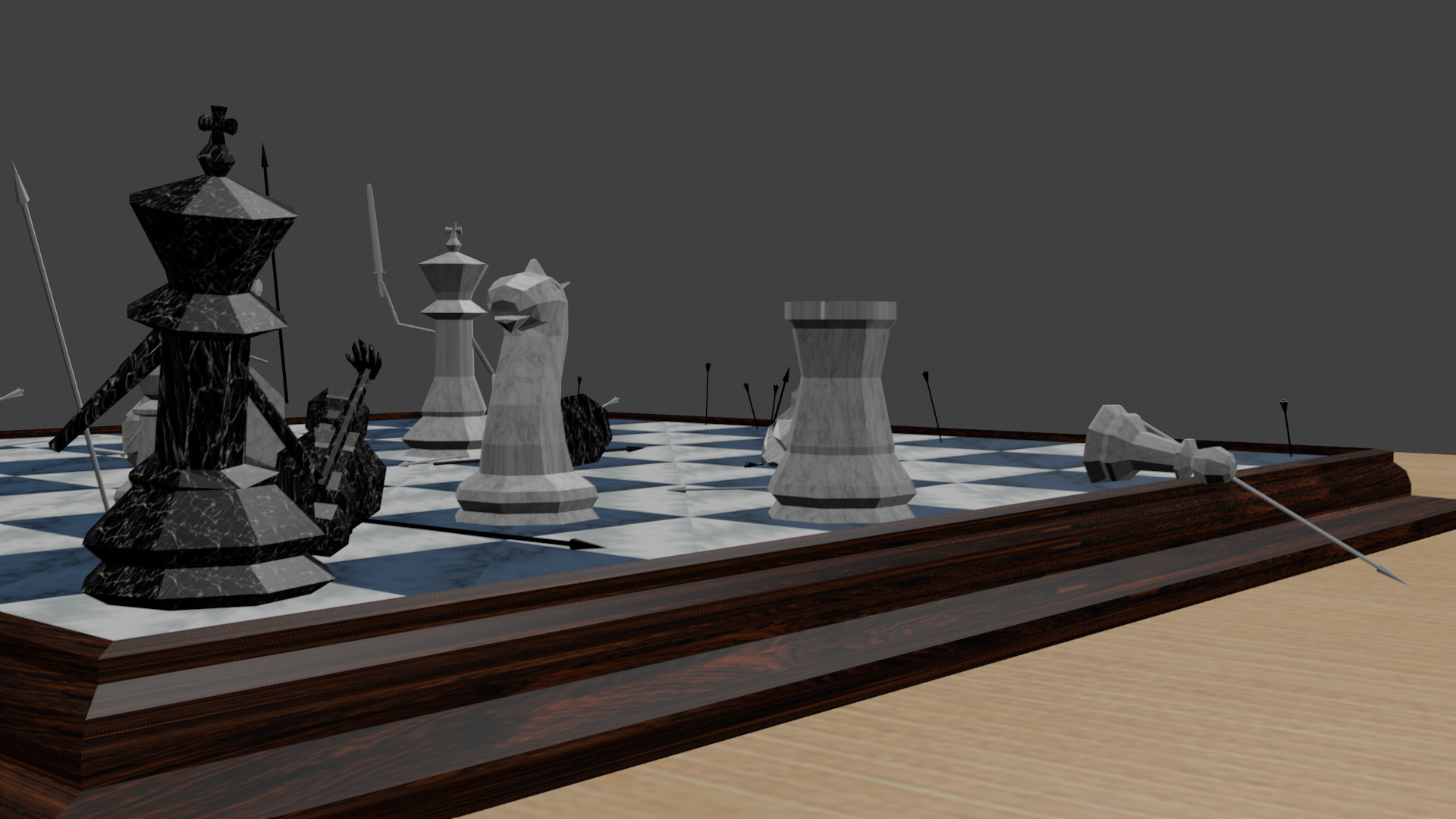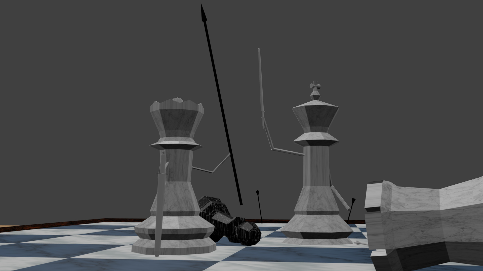 I really like what you’ve down to make it look like a battle ground, the spears, arrows and swords are a really nice touch, as are the arms/hands on the queen.